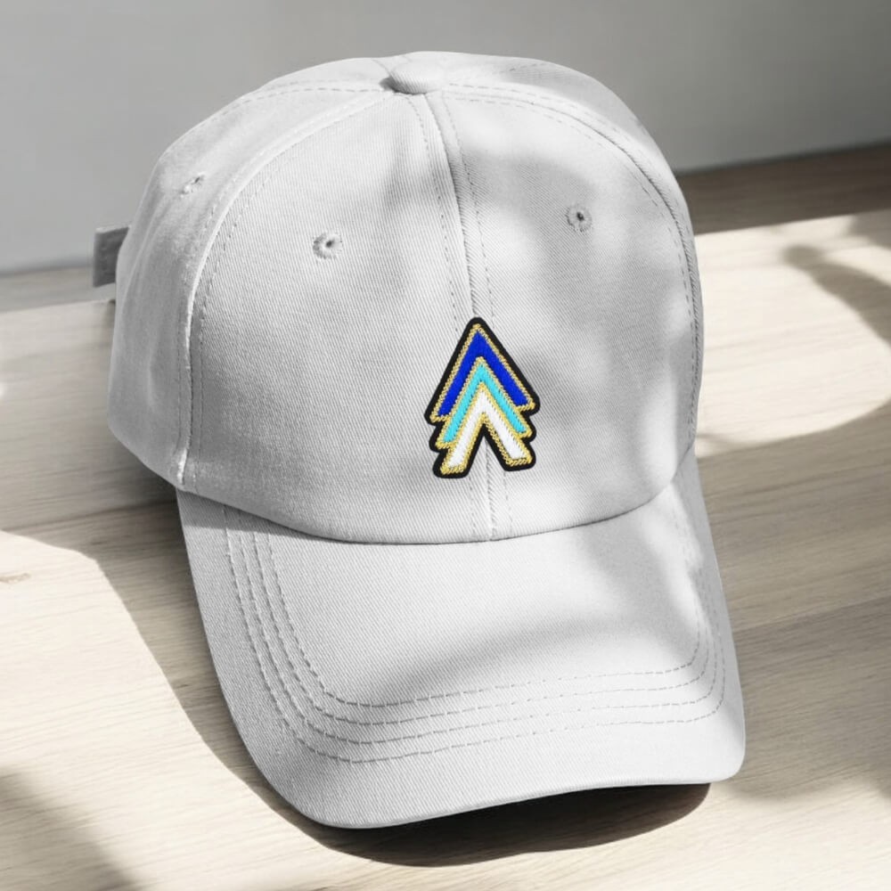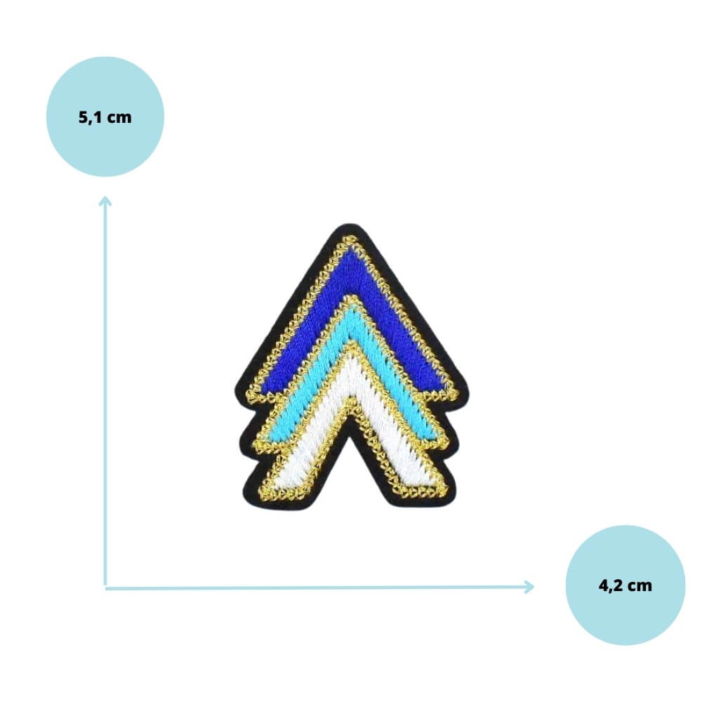 Ce patch reprend la forme du galon militaire à 3 chevrons, un signe de grade que l’on retrouve sur les uniformes. Ici, le motif quitte le registre strictement army grâce à un mélange de bleu roi, turquoise, blanc et doré, plus vivant, plus inattendu.