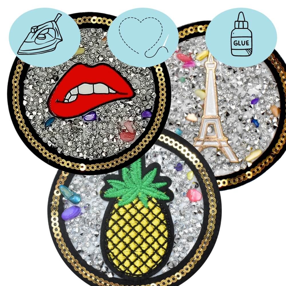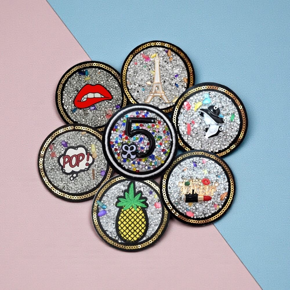 Un patch bijou qui attrape la lumière et change tout de suite l’allure d’un vêtement ou d’un accessoire.