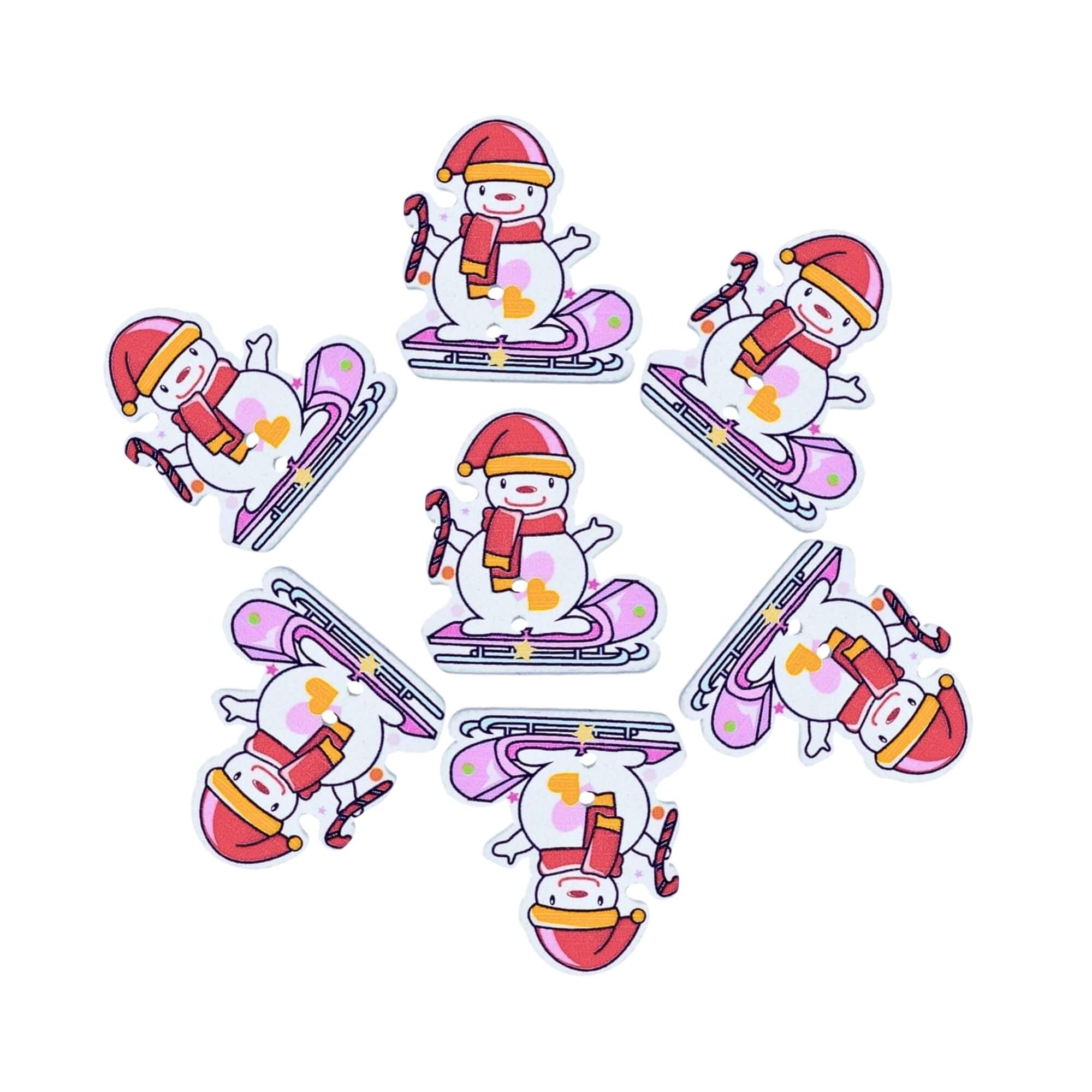 18 boutons en bois bonhommes de neige - Noël