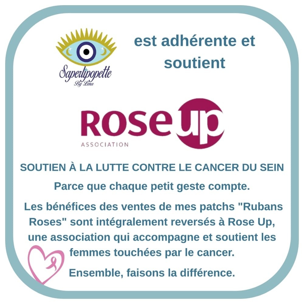 Les bénéfices de ce patch sont reversés à l’association RoseUp, qui accompagne les femmes mais aussi les hommes touchés par le cancer du sein. Merci de porter ce message d’espoir et de courage.