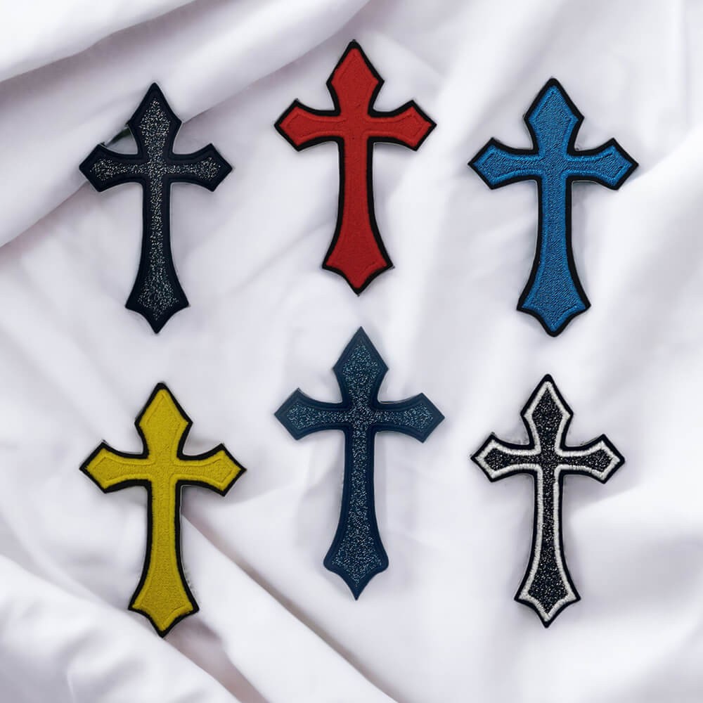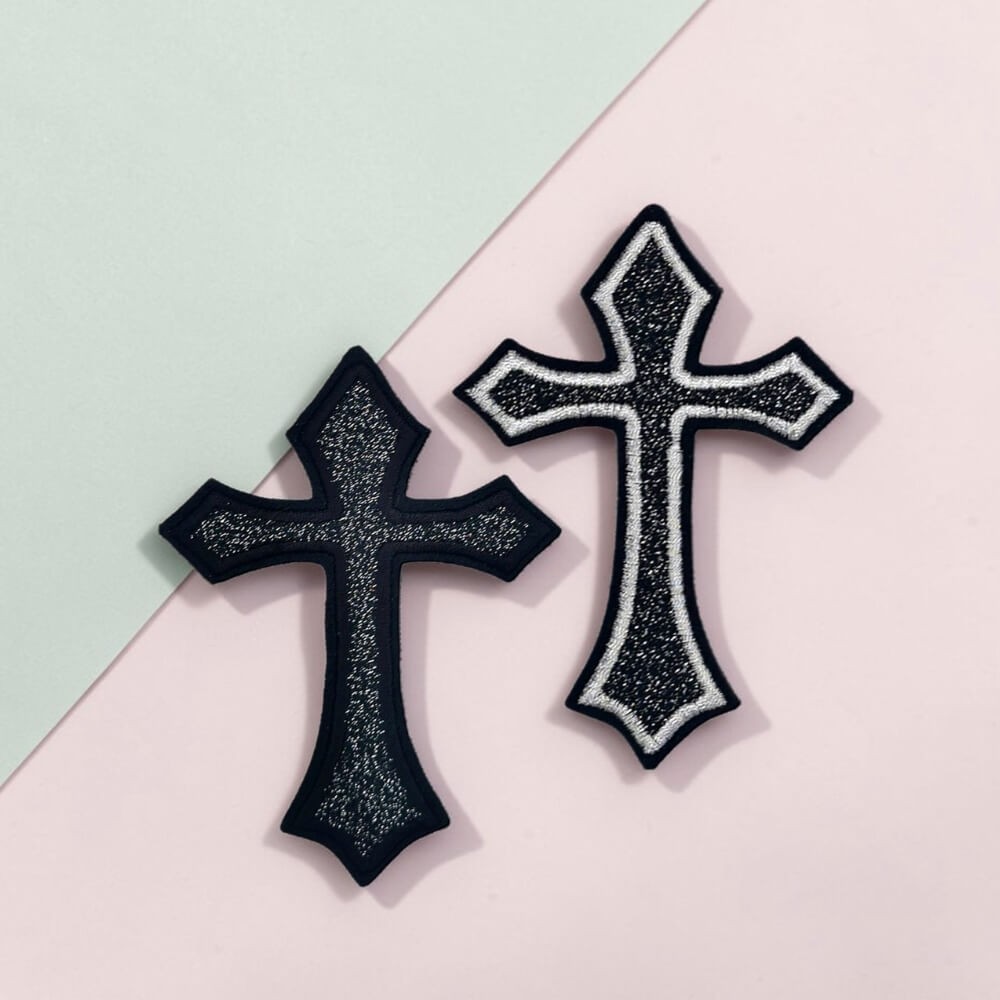 Patch croix gothique brodé, écusson thermocollant personnalisable