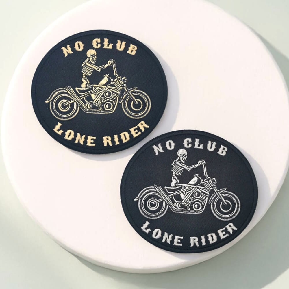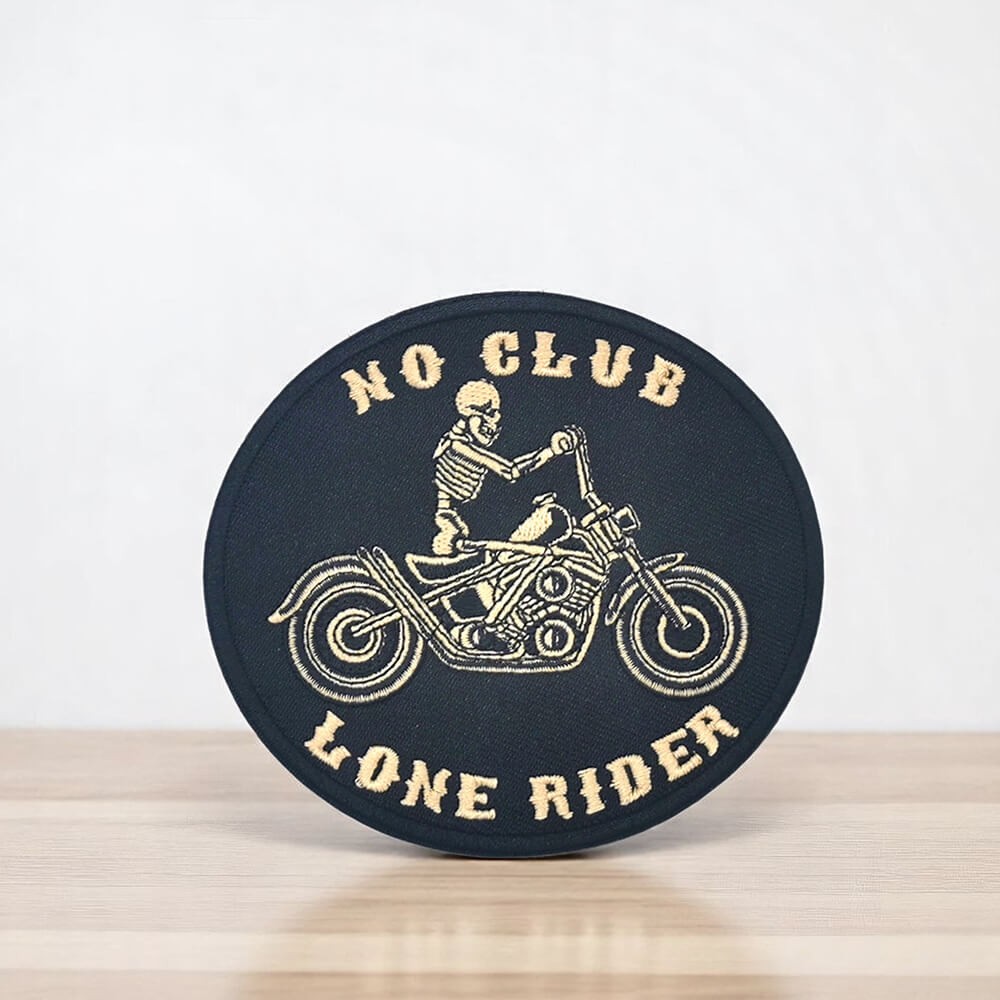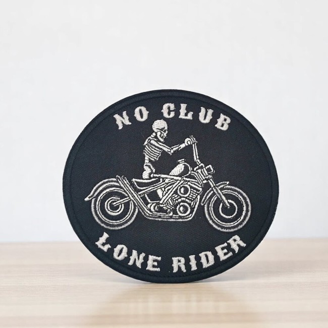 Ce patch brodé reprend une image forte de l’univers biker : un squelette lancé sur sa moto, encadré par les mots "No Club" et "Lone Rider". Un motif pour celles et ceux qui préfèrent tracer leur route sans appartenir à un club.
