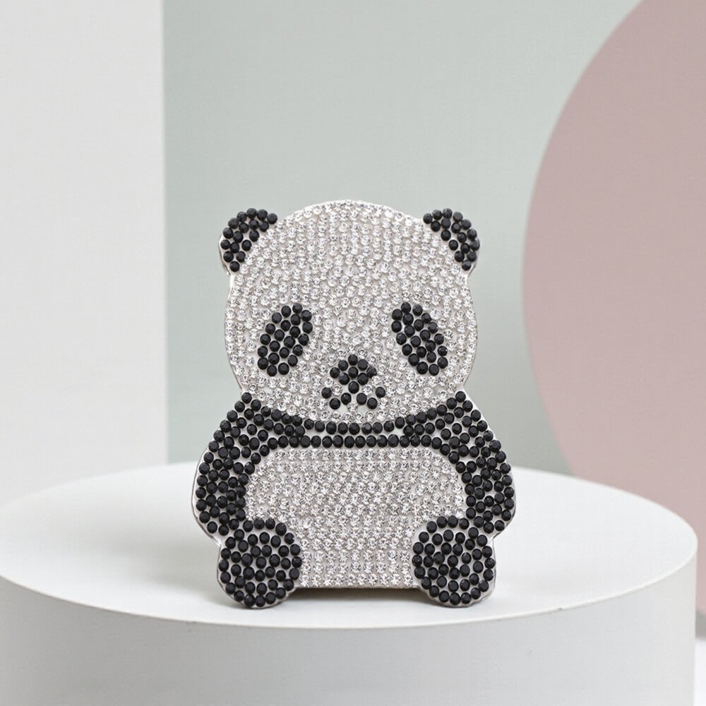 Un petit panda bijou, brillant et facile à placer, pour donner tout de suite du relief à un vêtement ou un accessoire.