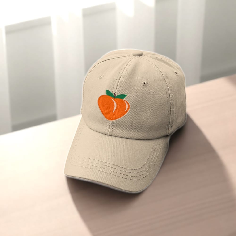 Motif pêche stylisée, feuillage vert sapin et message brodé "Feelin’ Peachy" en jaune soleil. Un clin d’œil rétro et joyeux pour personnaliser vos vêtements sans effort.