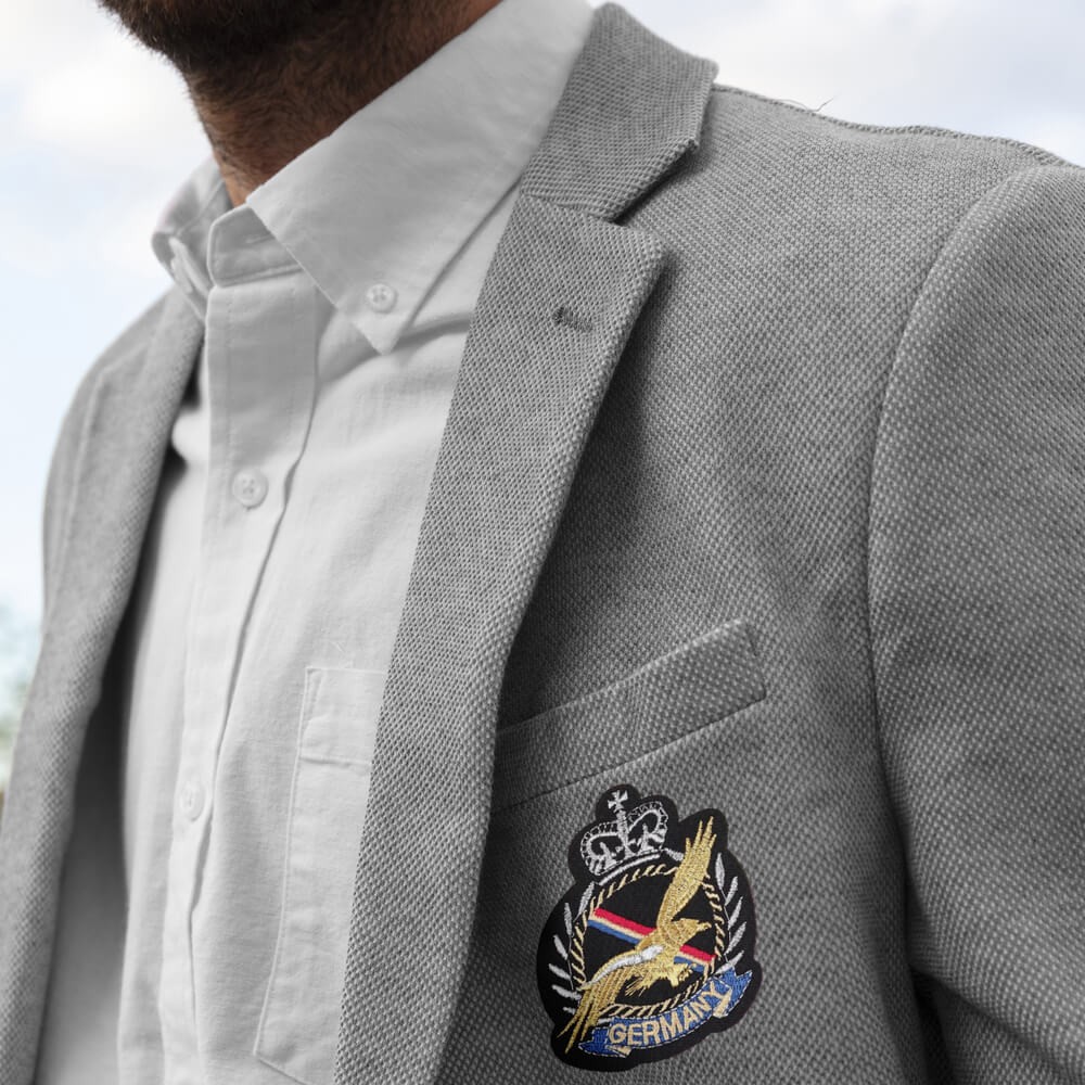 Vous cherchez un patch aigle puissant, graphique et structuré pour customiser une veste ou un blazer ? Ce blason brodé associe aigle doré, couronne stylisée et bandeau "Germany" pour un rendu inspiré des insignes héraldiques.