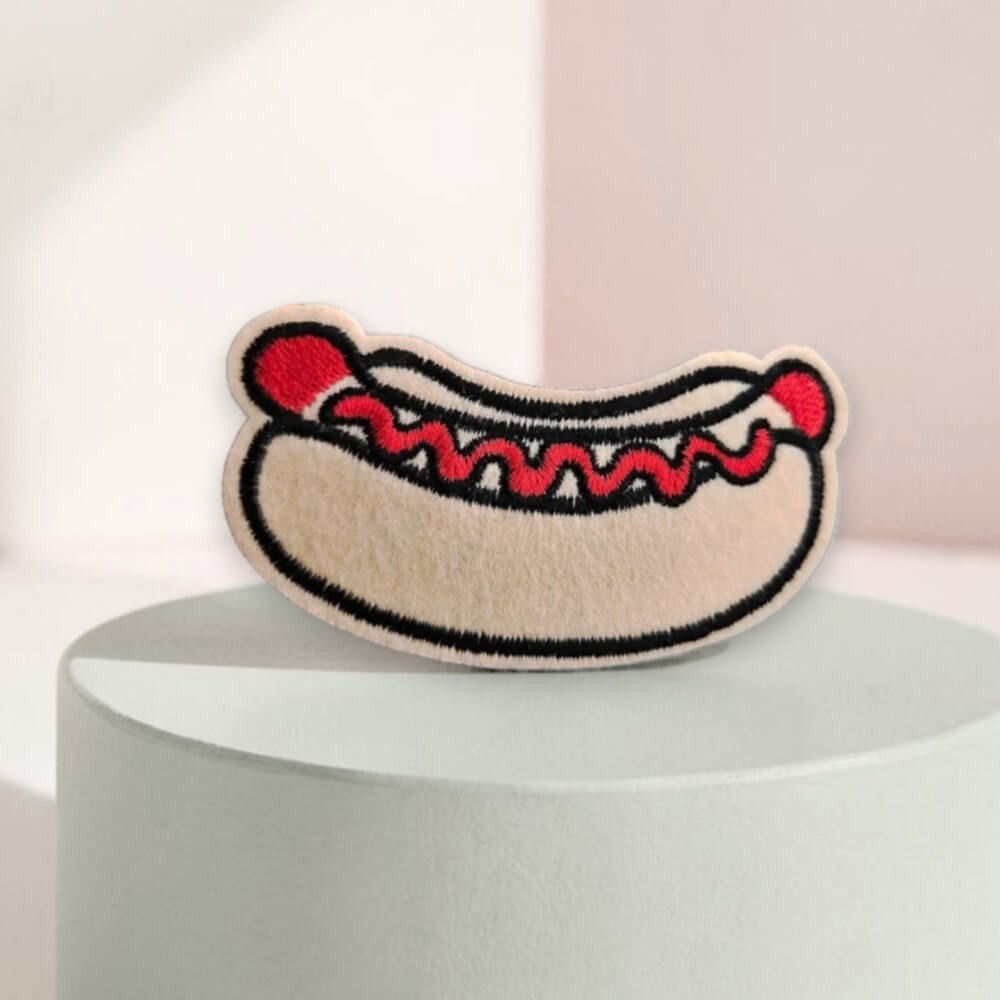 Patch brodé hot-dog, écusson thermocollant rétro