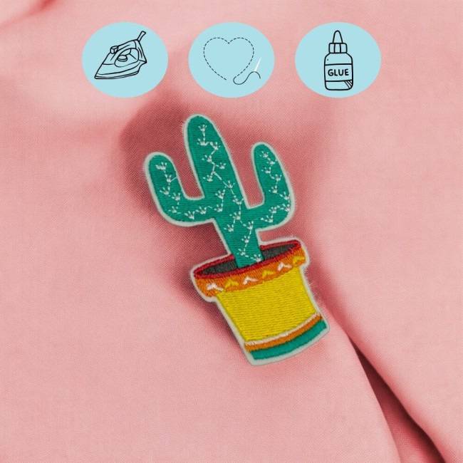 Patch brodé cactus, écusson thermocollant rétro