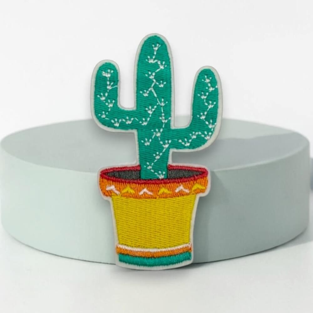 Ce patch reprend l’un des motifs les plus reconnaissables de l’imaginaire du Sud et de l’Ouest américain : le cactus. Mais ici, il n’est pas traité de façon brute ou désertique. Avec son pot décoré, ses couleurs vives et ses détails brodés, il évoque plutôt un cactus apprivoisé, décoratif, joyeux, presque domestique. On pense aux intérieurs bohèmes, aux objets artisanaux, aux influences mexicaines, à une façon de faire entrer la chaleur et la couleur dans le quotidien.