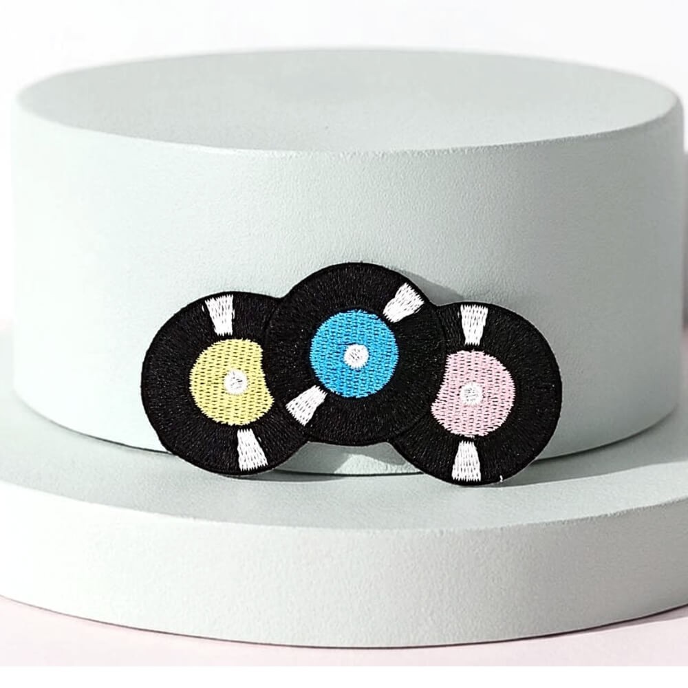 Patch brodé disques vinyles, écusson musique rétro