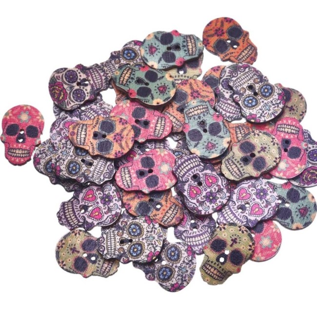 Boutons en bois têtes de mort