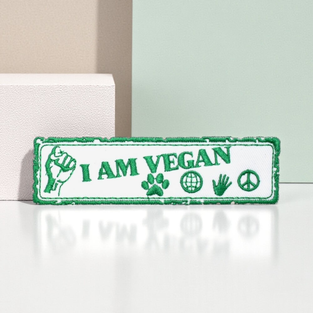 Patch brodé I AM VEGAN - Écusson thermocollant à message