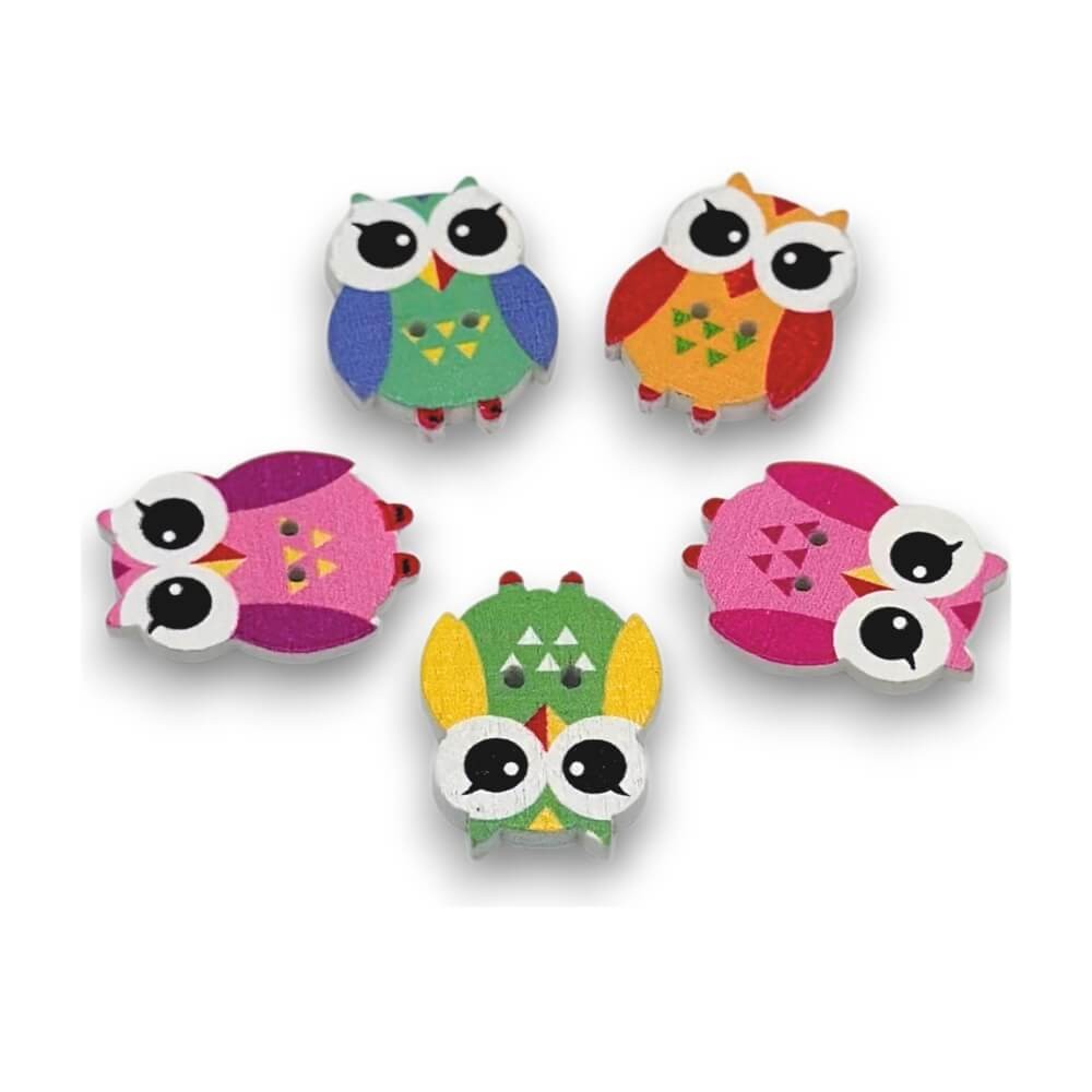20 boutons hiboux en bois