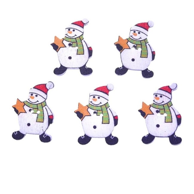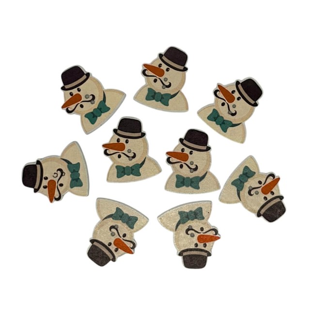 18 boutons bonhommes de neige en bois - Noël
