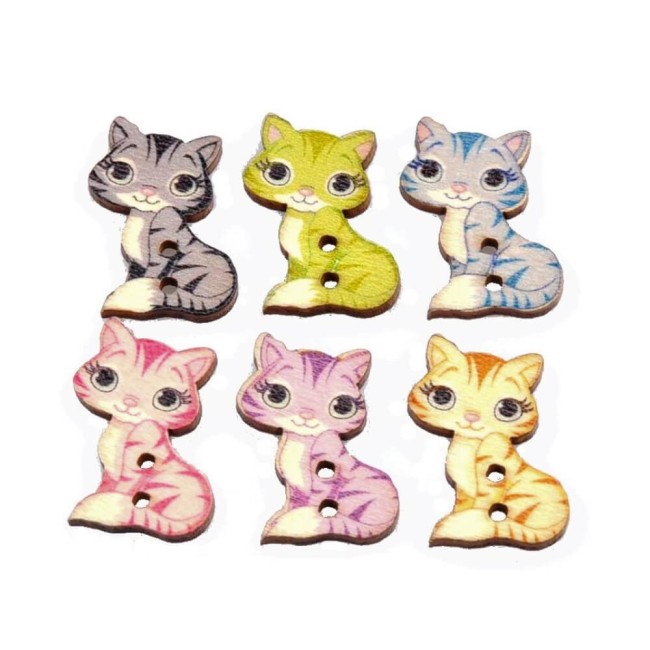 15 boutons chats en bois