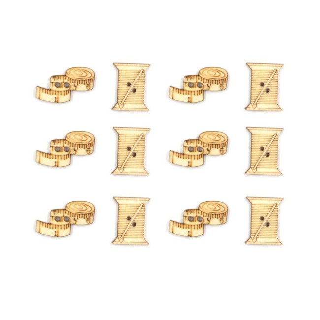 Boutons mètre de couturière en bois naturel