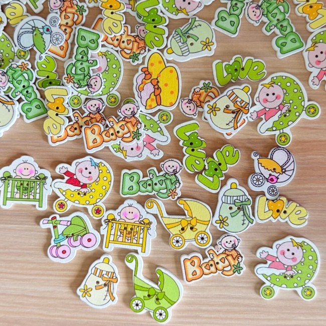 40 boutons bébé en bois