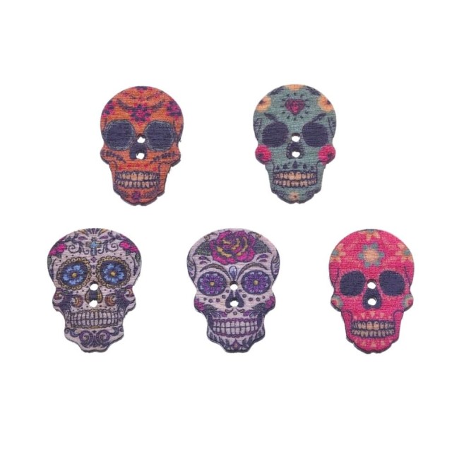 25 boutons en bois tête de mort - 2,7 cm