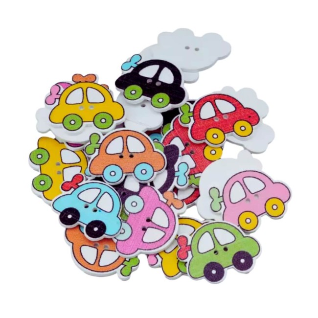 22 boutons jouet voiture en bois