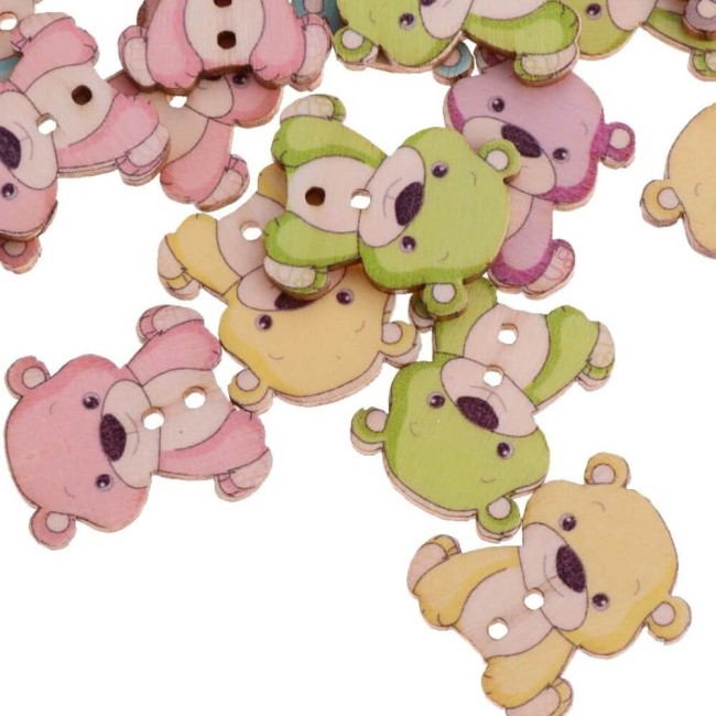 15 boutons oursons vintage en bois