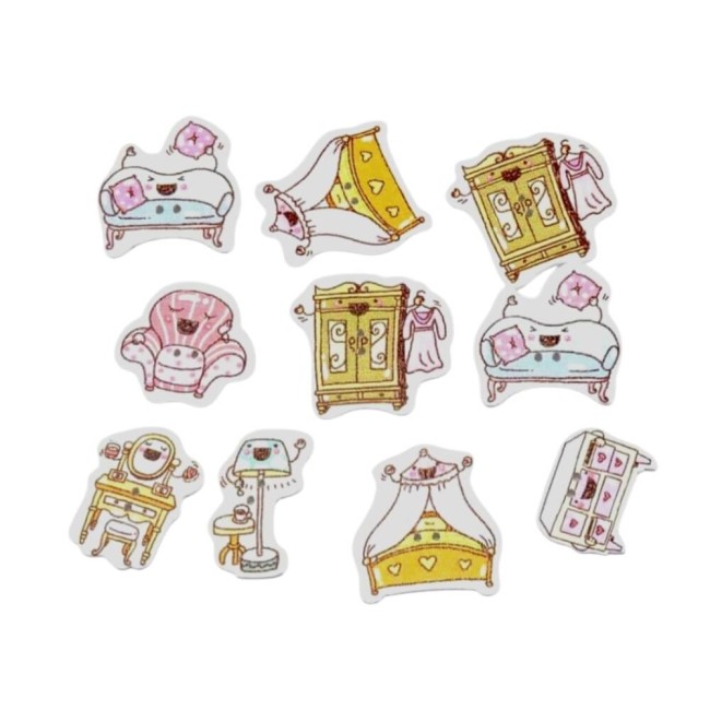 35 boutons bébé fille en bois