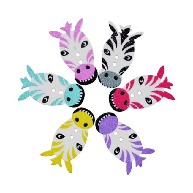 Pack de 50 boutons en bois animaux, poissons, papillons