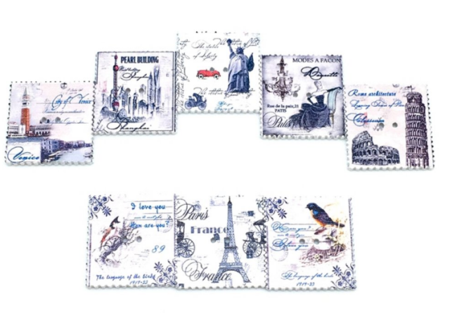20 boutons timbres vintage en bois Tour Eiffel France Rome - 3,3 cm