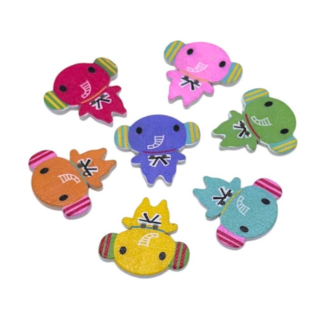 15 boutons en bois poissons tropicaux, 3 cm