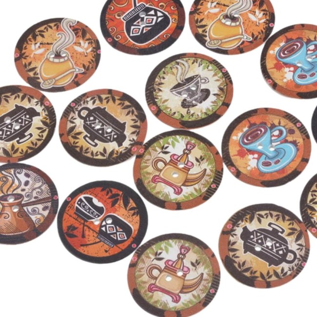 25 boutons ethniques en bois - 3 cm