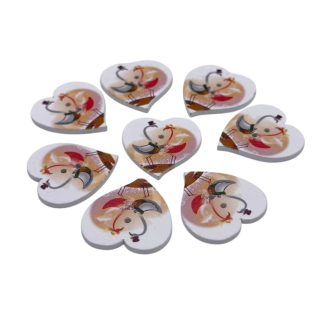 15 boutons coeurs en bois couple de flamants